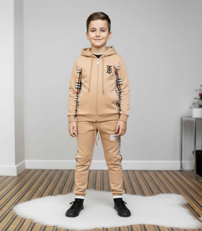 Burberry baskılı alt üst takım, çocukların günlük şıklığını ve rahatlığını bir arada sunan özel bir tasarımdır.