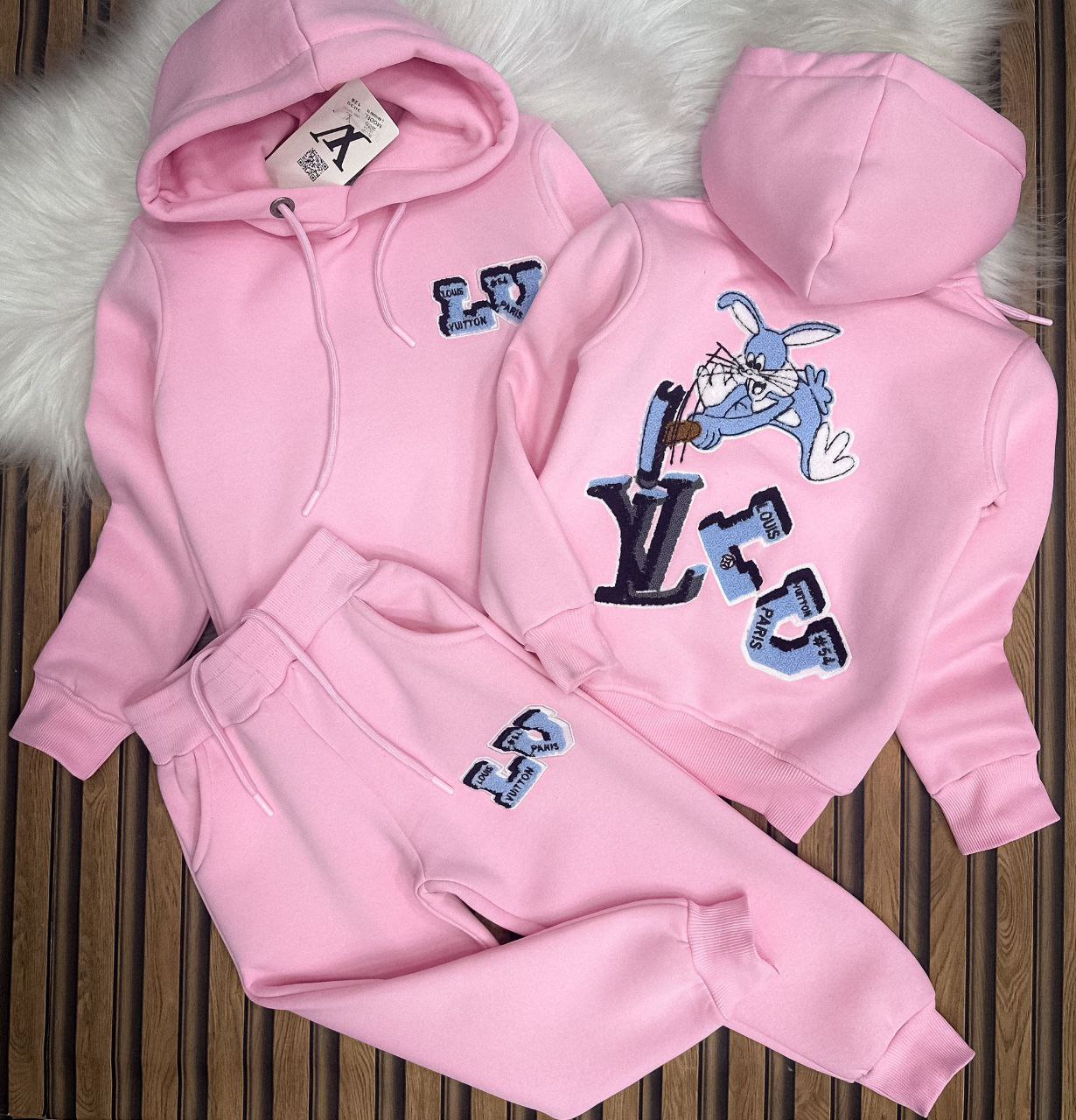 Kız Çocuk A Kalite Kapüşonlu Üç İplik Kışlık Eşofman Takımı Şık Ve Sıcacık