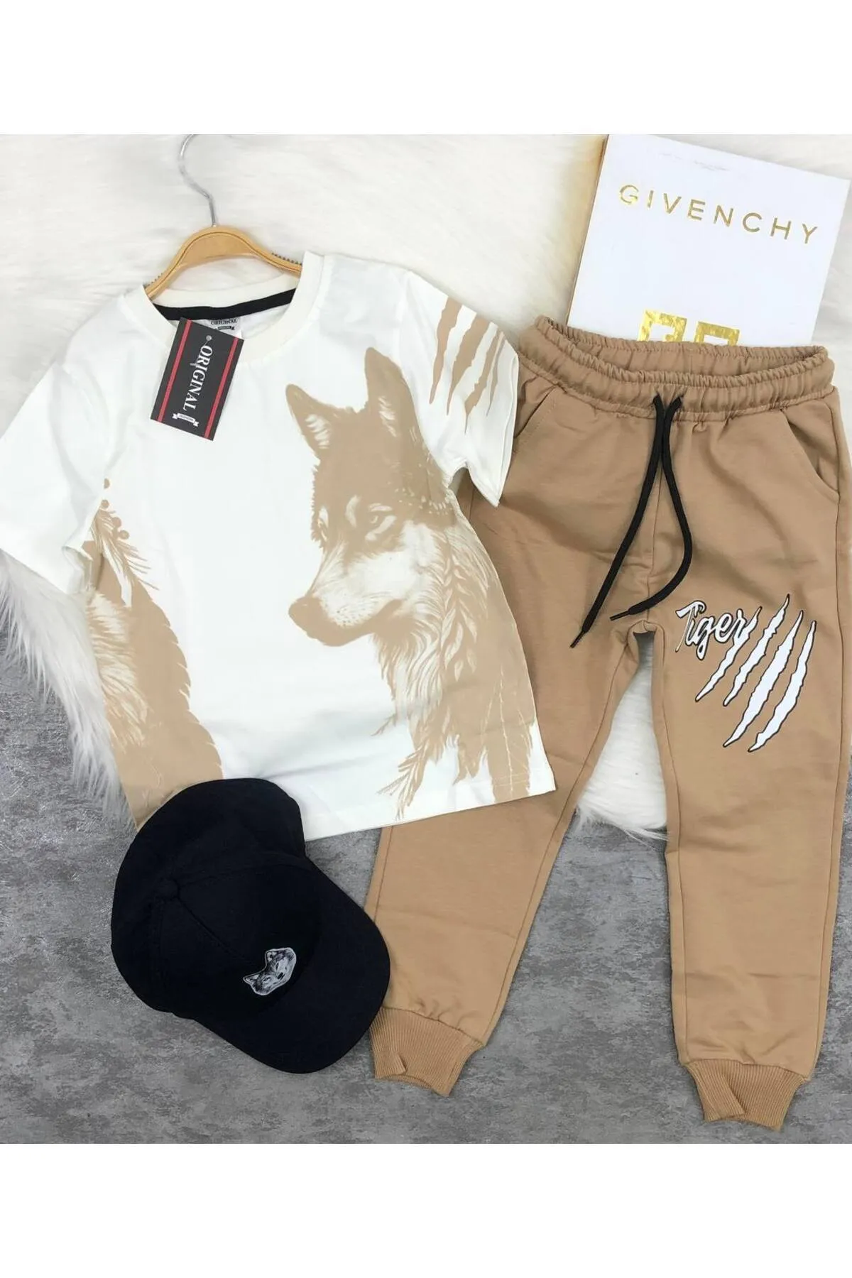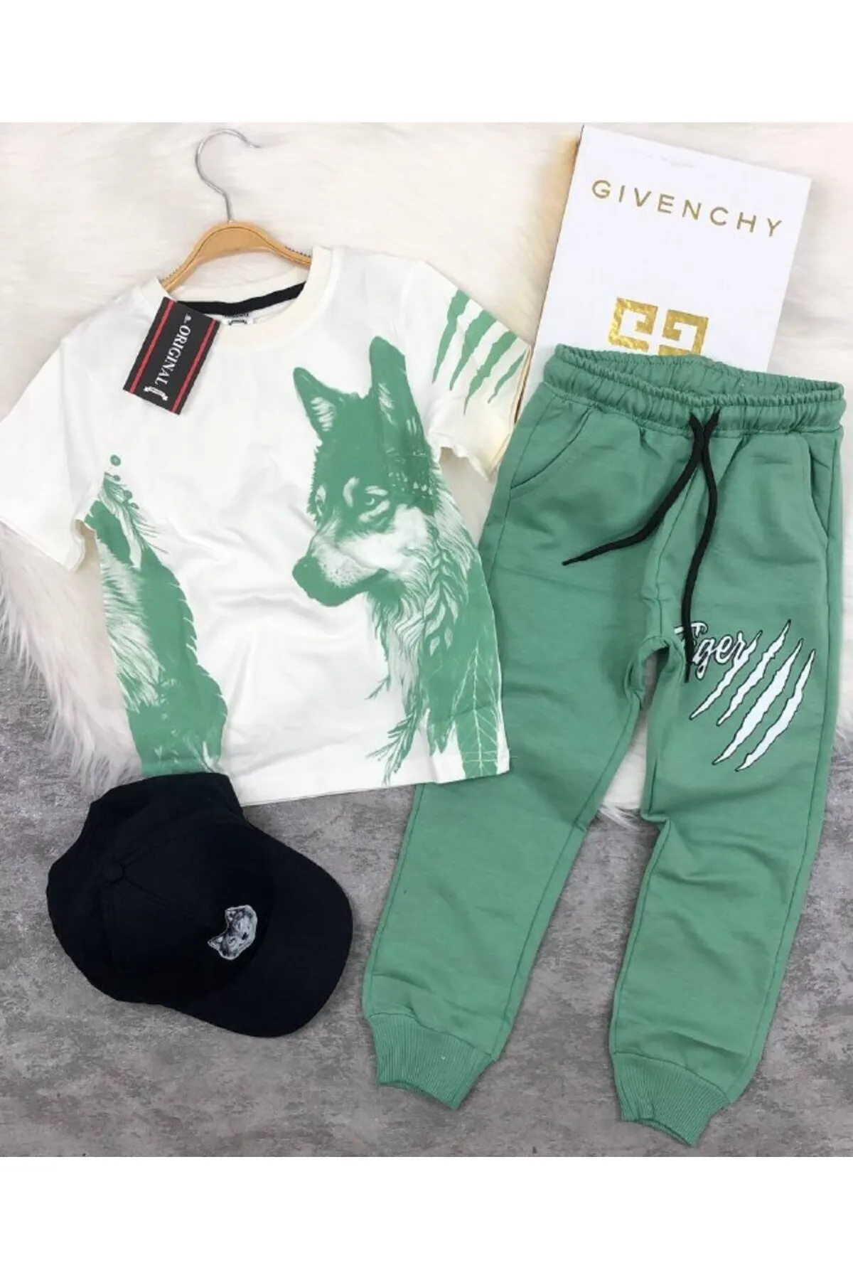 Şapkalı Kısa Kol üçlü erkek çocuk takım iki iplik sıkkı dokuma penye kumaş