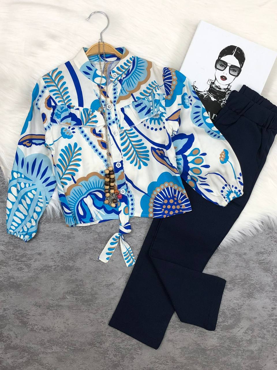 Şıklığın Zarif Dokunuşu: Desenli Bluz & Pantolon Kombin