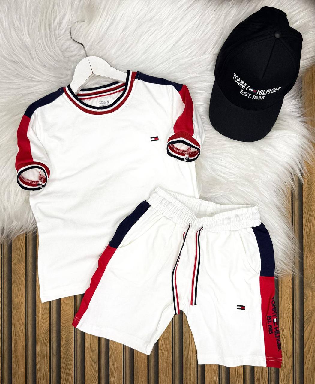 tommy Baskılı Şapka + Kısa Kollu Tişört + Şort Takımı – Yazlık 3′lü Kombin