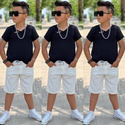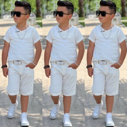 Tişört Şort Ve Şapkalı 3 lü Takım Erkek Çocuk